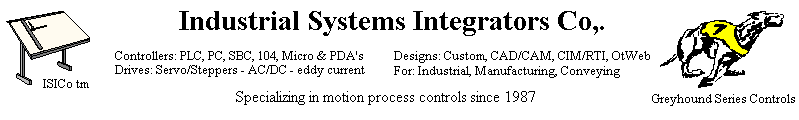 Industrial Systems Integrators Co Office: 816.322.2020, PO. Box 346, Belton Missouri, 64012 Specializing in motion process controls since 1987 Copy Right 1987-2015